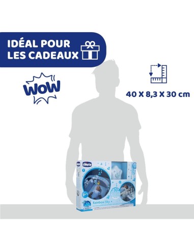 Musica Rilassante: Rainbow Sky diffonde una selezione di musiche classiche (Bach, Brahms, Mozart, Beethoven) e New Age, con cicli di 15 e 30 minuti. Il selettore di volume permette di adattare il suono alle esigenze del bambino.
