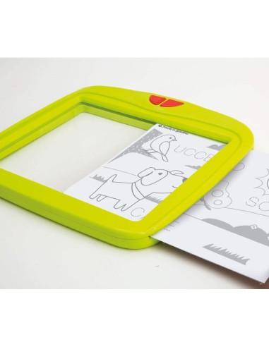- Include schede illustrate per giochi di prescrittura, imparare l'alfabeto e nuove parole tramite ricalco.