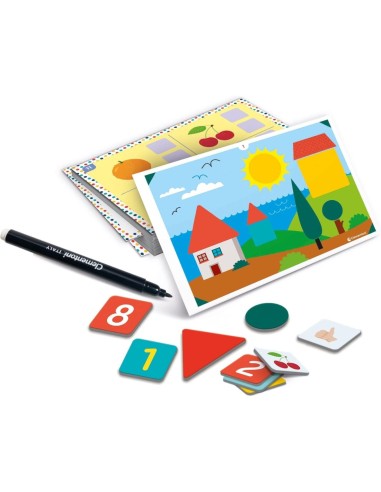 Include un libretto con un percorso educativo strutturato, che guida il bambino in modo chiaro e stimolante nell'apprendimento. La lavagna magnetica, dotata di un lato scrivibile con pennarello cancellabile incluso, offre ulteriori opportunità per esercizi creativi e pratici.