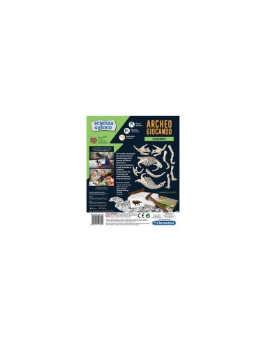 Diventa un vero paleontologo con Archeogiocando Triceratopo Luminoso al Buio! Scava e assembla i resti del leggendario Triceratopo e guarda come si illumina al buio, dando vita a un'avventura unica. Grazie all'app gratuita, potrai utilizzare la realtà aumentata: inquadra le carte con tablet o smartphone per vedere il Triceratopo prendere vita e scoprire il passato. Scatta foto, crea video e condividi le tue scoperte. Il kit include un martello e scalpello, perfetti per i piccoli esploratori in erba.