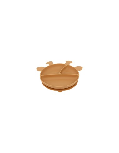 Set Pranzo, 4 Pezzi, Giraffa, Silicone, Ocre, Piatto, Ciotola, Bicchiere, Cucchiaio