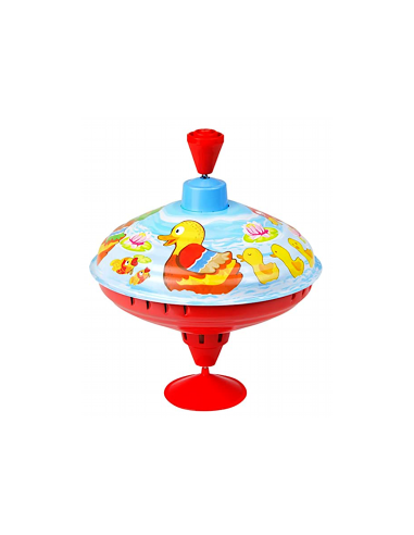 Realizzata in metallo resistente, è decorata con deliziose paperelle che girano velocemente quando si preme la manopola superiore. Oltre al divertimento visivo e sonoro, la trottola aiuta a sviluppare la coordinazione mano-occhio e la percezione del movimento nei più piccoli.