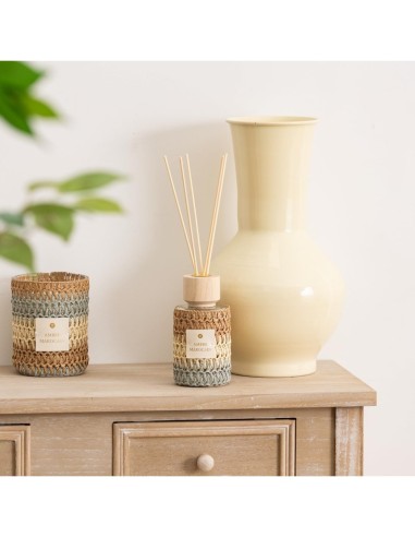 Aggiungi un tocco di calore e stile ai tuoi ambienti con il diffusore di profumo Zaya Ambra di Atmosphera Créateur d’intérieur. Il flacone in vetro è avvolto da una trama colorata e sormontato da un tappo effetto legno, conferendo un design raffinato e originale. Gli 8 bastoncini in rattan diffondono una fragranza ambrata intensa e avvolgente per circa 8 settimane, rendendo soggiorno, camera o studio spazi eleganti e accoglienti. Completa l’atmosfera abbinando una candela della stessa linea.