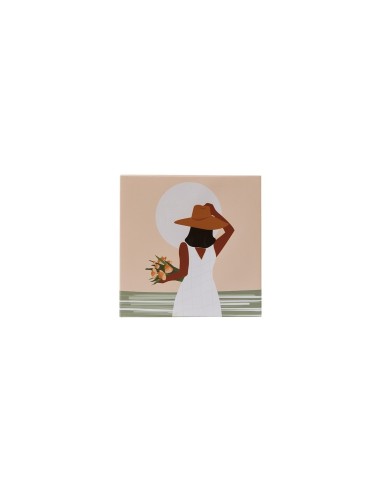 Set 5 tele stampate, Cynthia, donna, design moderno, MDF, 25 x 25 cm, colori pesca, arte decorativa