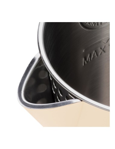 Grazie al design senza fili, alla bocca ampia e all’interno in acciaio inox saldato senza cuciture, la pulizia è semplice e completa. Le pareti fredde e l’elemento riscaldante nascosto garantiscono praticità e sicurezza quotidiana.