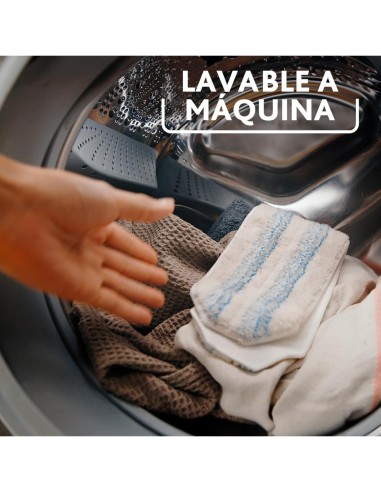 Il panno in microfibra incluso è lavabile e riutilizzabile, mentre il meccanismo di strizzatura è progettato per essere utilizzabile con una sola mano, facilitando il lavoro.