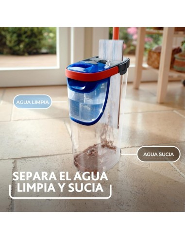 Il Vileda H2Pro Flat Mop System Complete rappresenta una soluzione innovativa per la pulizia dei pavimenti, combinando efficienza, igiene e praticità. Grazie al sistema a doppio serbatoio, l’acqua pulita rimane separata da quella sporca durante l’uso, per garantire un risultato più igienico.