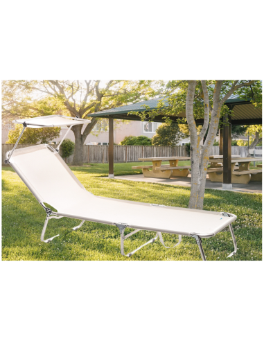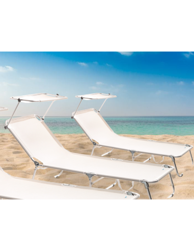 Tahiti è la scelta moderna e funzionale per rilassarsi sotto il sole estivo, grazie alla sua struttura resistente in alluminio anodizzato e al solido telo in tessuto di textilene 450 g/m2 bianco. Con uno schienale reclinabile in più posizioni tramite un meccanismo a cricchetto, offre massimo comfort in ogni momento. Proteggiti dai raggi UV con il tettuccio parasole regolabile nelle ore più calde. Facilmente richiudibile e trasportabile grazie alle comode maniglie integrate. Dimensioni: 190 x 61 x h 67 cm. ART. M0601-08.
