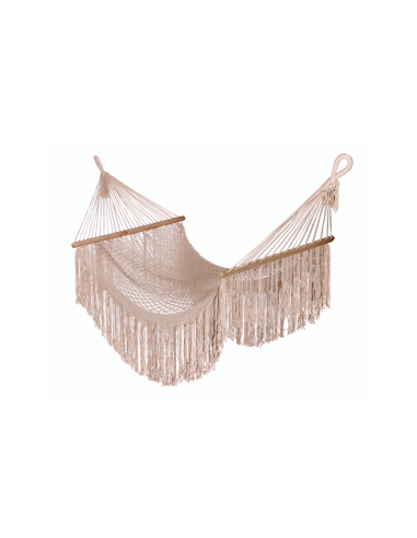 Amaca in Cotone Beige Chiaro con Aste in Legno – 80x245 cm