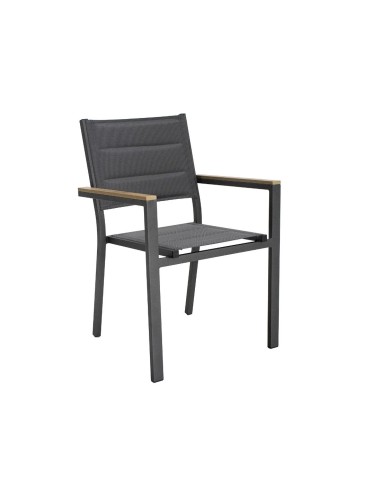 Caratteristiche principali: 1. Struttura resistente: La struttura è realizzata in alluminio verniciato di colore antracite, garantendo durabilità e resistenza agli agenti atmosferici. 2. Seduta e schienale confortevoli: La seduta e lo schienale sono realizzati in textilene imbottito di colore fumo, offrendo comfort e facilità di manutenzione. 3. Braccioli in Polywood: I braccioli sono dotati di inserti in Polywood effetto Teak, un materiale sintetico che offre l’aspetto del legno con una maggiore resistenza agli agenti atmosferici. 4. Dimensioni pratiche: Le dimensioni della poltrona sono di 57x57xH88 cm, offrendo una seduta comoda e una presenza elegante nel tuo spazio esterno. 5. Impilabile: La poltrona è progettata per essere impilabile, consentendo di risparmiare spazio durante lo stoccaggio.
