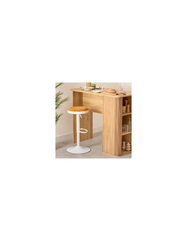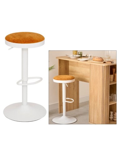 Lo sgabello da bar Ilsa in versione bianco e ocra è la scelta ideale per ambienti dinamici e luminosi. Realizzato con una solida struttura in acciaio e una seduta rivestita in tessuto certificato Oeko-Tex, offre resistenza, comfort e sicurezza. Le sue dimensioni compatte (Ø 41,5 cm, altezza 76 cm) unite alla possibilità di regolare l’altezza lo rendono perfetto per diversi tipi di superfici. Il montaggio è semplice e intuitivo, mentre il packaging kraft rispetta l’ambiente. Un complemento pratico e dallo stile deciso per ogni tipo di spazio.