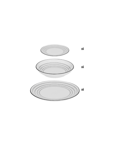 Servizio completo da 18 pezzi: 6 piatti piani, 6 fondi, 6 da dessert
