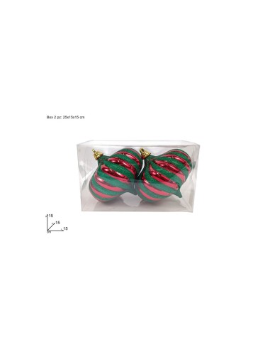 CONF 2 SFERE GOCCIA 15CM ROSSO GLITTER VERDE
