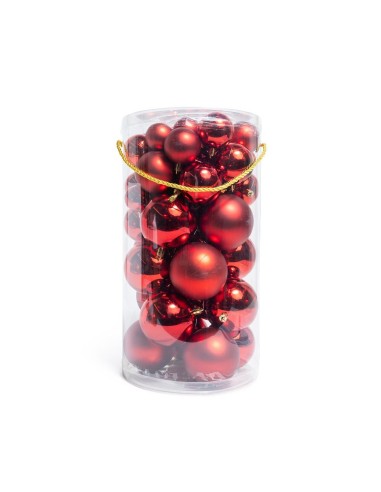 Sfere di Natale rosse in plastica, misure miste, confezione da 50 pezzi