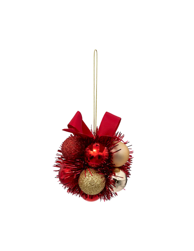 PENDENTE 11 SFERE 3CM ORO/ROSSO PLASTICA
