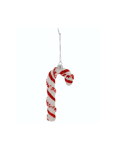 PENDENTE BASTONCINO VETRO 15CM ROSSO/BIANCO