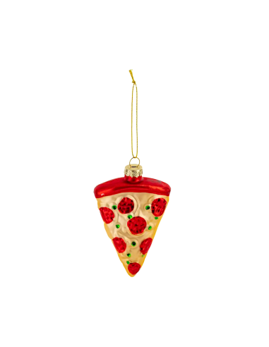 Decorazione pendente di Natale fetta di pizza 11cm in vetro rosso/oro - La magia di Natale a casa tua