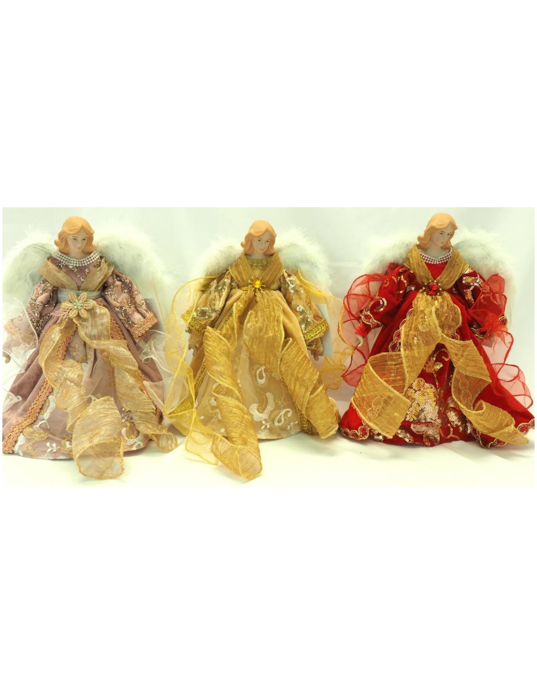 PUNTALE ANGELO H30CM VESTE TESSUTO ROSSO/ROSA/ORO