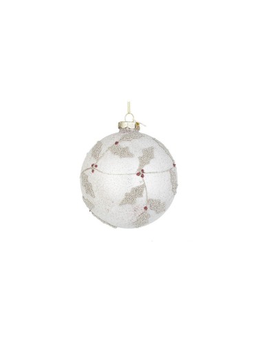 Sfera di Natale in Vetro 10cm Sibyl Bianco/Champagne, La Magia di Natale per Decorazioni Eleganti