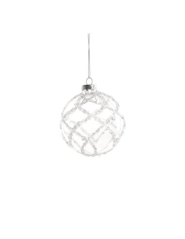 sfera natalizia in vetro, diametro 8 cm, decorata con perline