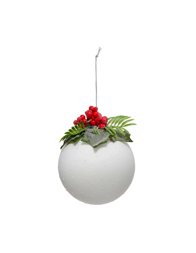 SFERA VETRO CON AGRIFOGLIO 10CM BIANCO