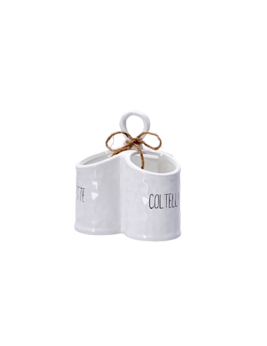 Questo elegante portaposate in ceramica è un accessorio pratico e decorativo per la cucina o la tavola. Con dimensioni di 16x14x18 cm, offre spazio sufficiente per contenere posate, utensili da cucina o altri piccoli accessori, mantenendo tutto in ordine con stile. Realizzato in ceramica di qualità, è resistente e facile da pulire. Il suo design raffinato si adatta a qualsiasi tipo di arredamento, rendendolo un complemento perfetto sia per l’uso quotidiano che per le occasioni speciali.