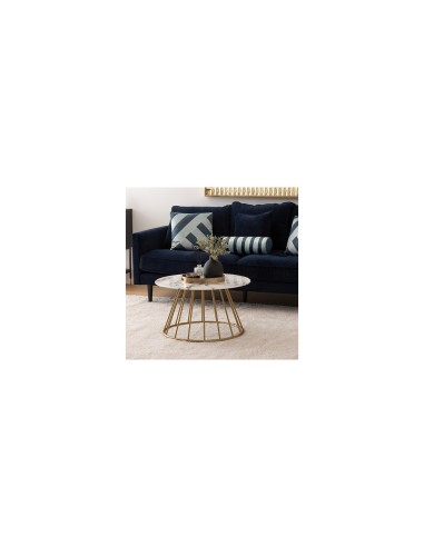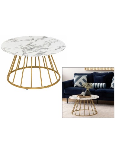 Tavolino Rayo, effetto marmo bianco, vetro temperato, D70 cm, struttura in acciaio