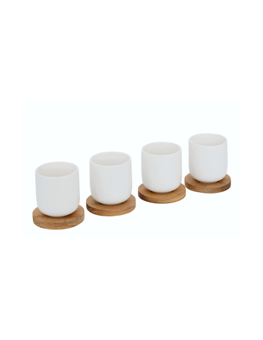 Cofanetto Eleganza, 4 tazze 10 cl, vassoio in acacia, lungo 25 cm, colore bianco, newbone