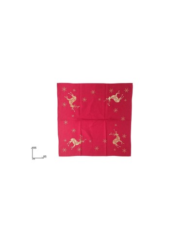 Centrotavola di Natale in tessuto rosso 85x85 cm con decoro renna oro