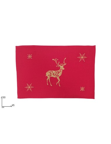 TOVAGLIETTA TESSUTO ROSSO 30X45CM CON DECORO RENNA ORO