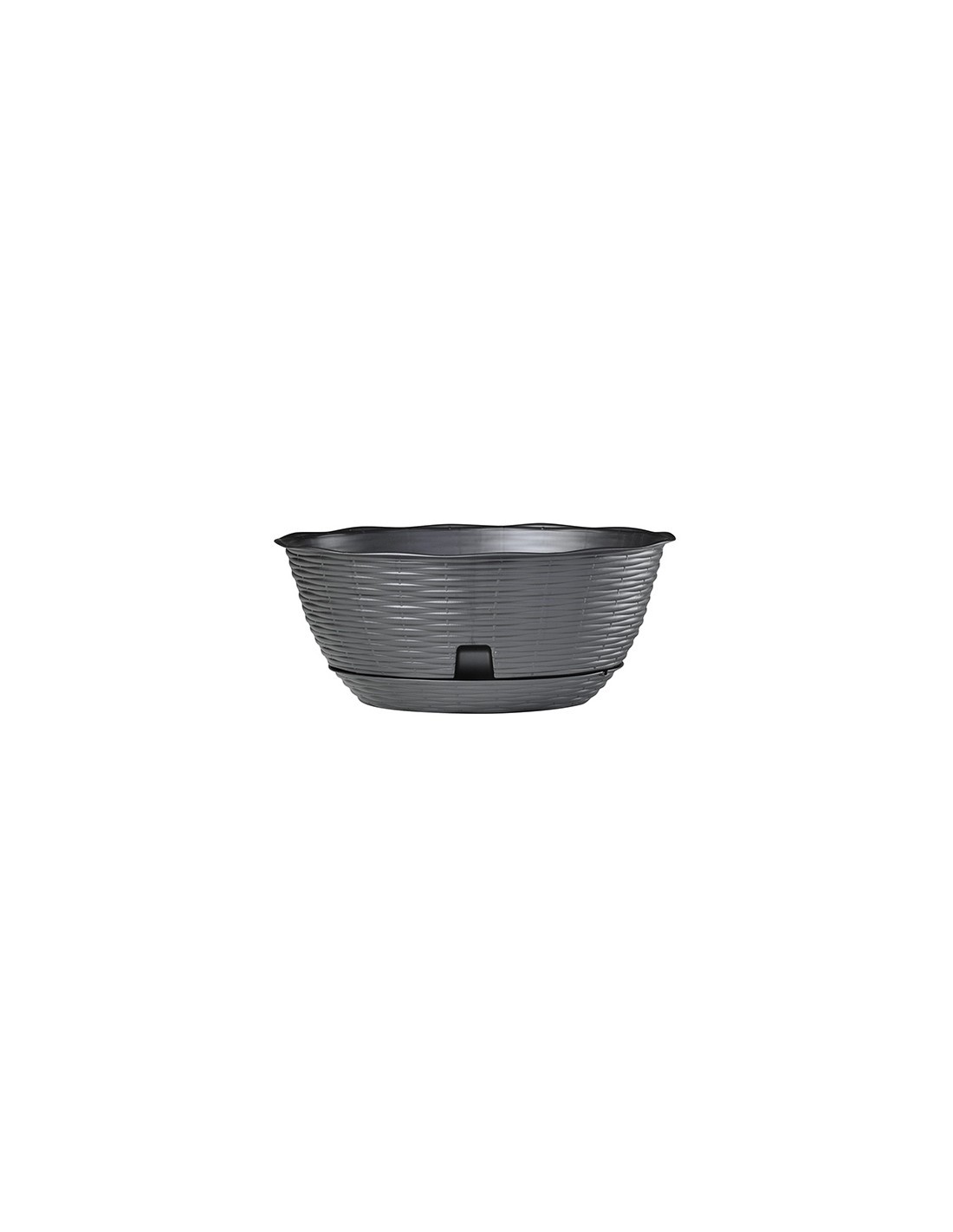 Ciotola completa di sottovaso con invito per l'irrigazione, caratterizzata dal design della paglia intrecciata. La resistenza agli sbalzi di temperatura, agli urti e ai raggi solari la rende ideale in tutti gli