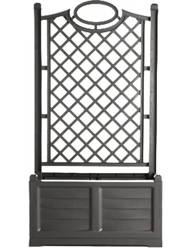 Caratterizzata da una finitura superficiale in rilievo che crea un effetto legno molto realistico, questa fioriera offre la possibilita' di posizionare la spalliera in due soluzioni, centrata rispetto alla base oppure nella consueta posizione a 'schienale'. Resistente e facile da montare, senza l'utilizzo di attrezzi, puo' essere utilizzata come un elegante e naturale divisorio per delimitare spazi interni o esterni. E' resistente agli sbalzi di temperatura e ai raggi solari. Dimensioni: 80 x 42.5 x h 150 cm. Colore: Ferro Battuto.
